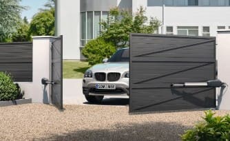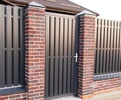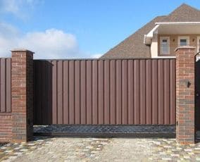 Описание: Графитный двухсторонний профлист с планкой и двумя воротами.
